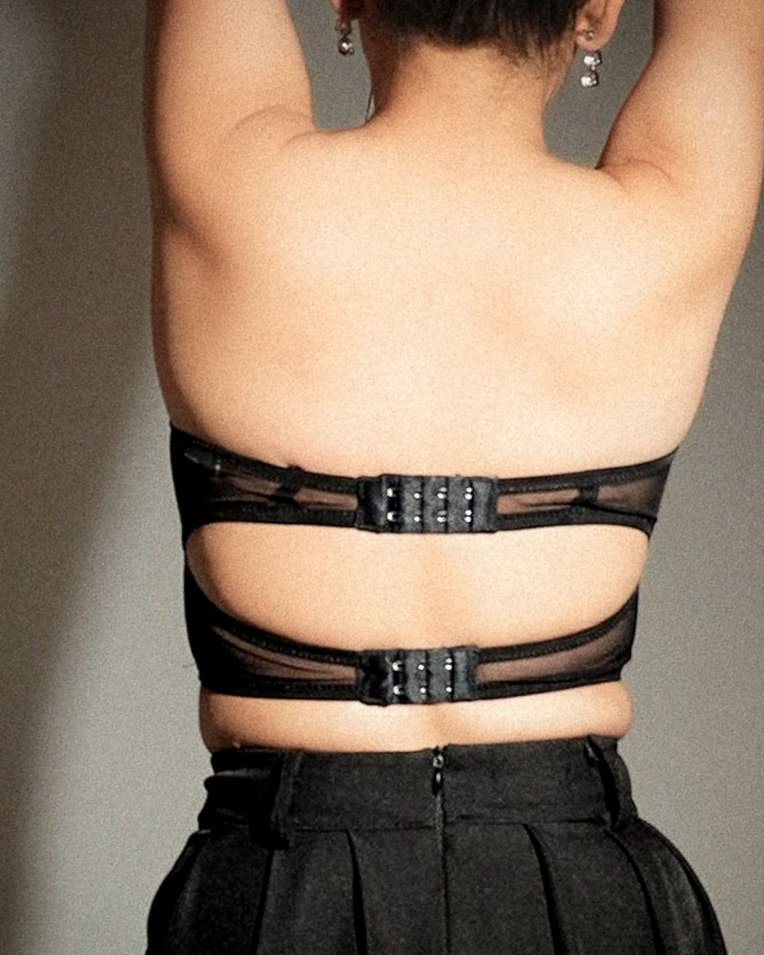 The corset-inspired top that balances structure with play. Designed in sheer mesh and framed with lace panels, it’s bold without tipping into costume, and sultry without the struggle.