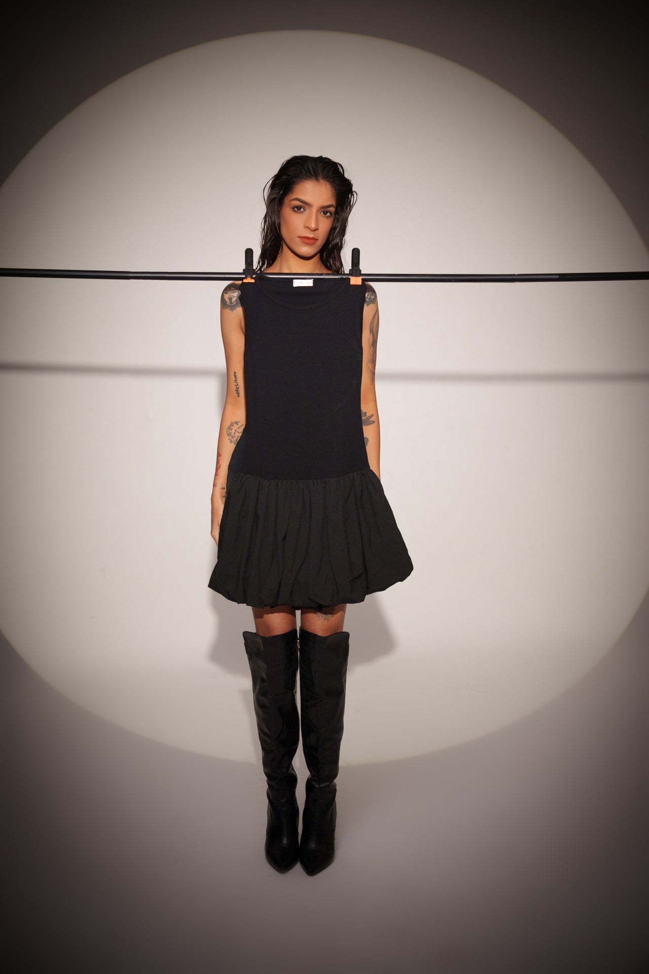 The Voidcore Dress is all about shape and movement. It brings a bold silhouette that balances structure with fluidity.